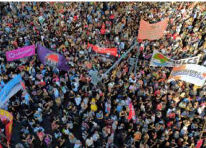 وسلطت الكلمات التي ألقيت في التجمع الختامي الضوء على «الوحدة» التي ستظهرها «العشرات من المنظمات الشعبية والنقابية والاعتصامات والطلابية والبيئية ومنظمات حقوق الإنسان». وتمت قراءة وثيقة تلخص أهداف الاحتجاج.