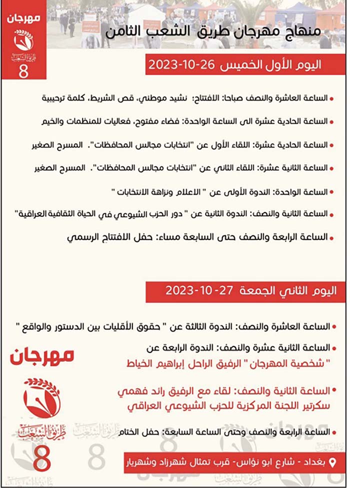 منهاج مهرجان طريق الشعب الثامن
