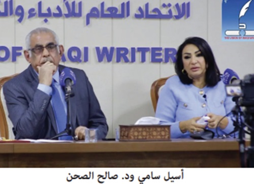 د. صالح الصحن أدار جلسة الاحتفاء التي احتضنتها قاعة الجواهري في مقر الاتحاد، وافتتحها بتقديم سيرة المحتفى بها، لتتحدث هي بدورها عن مسيرتها في فضائي الكتابة والإعلام وأبرز إنجازاتها في هذين المجالين، فضلا عن تجربتها الإعلامية في العراق وقطر، مبينة انها تطمح إلى تحقيق المزيد، وانها في حالة تعلم دائم.