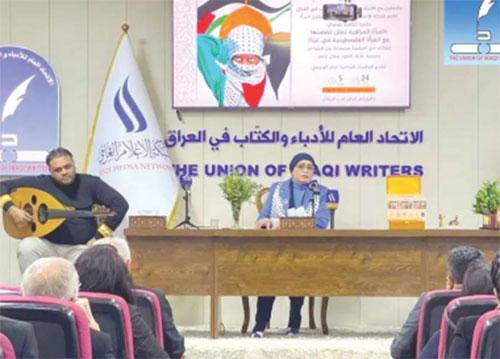 تحت عنوان “المرأة العراقية تعلن تضامنها مع المرأة الفلسطينية في غزة”، احتضنت قاعة الجواهري في مقر الاتحاد العام للأدباء والكتاب، الأربعاء الماضي، جلسة شعرية نسوية نظمها قسم تمكين المرأة في شبكة الإعلام العراقي بالتعاون مع الاتحاد.