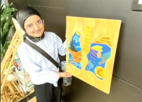 صبية كربلائية عمرها 13 عاما، ابتليت بمرض أجبرها على حمل جهاز تنفس يستقر عند خاصرتها اليسرى ليمنحها الأكسجين عبر أنبوب بلاستيكي. لكن هذه الصبية، واسمها مريم أحمد، تحدت مرضها بفن الرسم، وافتتحت مشغلا فنيا أطلقت عليه عنوانا يرمز إلى التنفس، وهو "شهيق الفن".