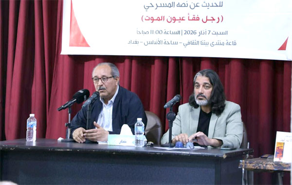 في مناسبة الذكرى السنوية الـ63 لاستشهاد القائد الشيوعي سلام عادل، شهدت قاعة "بيتنا الثقافي" في ساحة الاندلس ببغداد صباح السبت الماضي، جلسة ثقافية تحدث فيها الكاتب المسرحي عبد الحكيم الوائلي، عن نصه المسرحي المعنون "رجل فقأ عيون الموت".