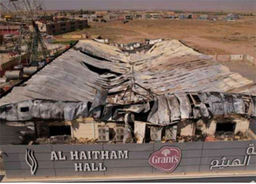 «قاعة الهيثم» في الحمدانية “قطاع خاص وشُيّدت من دون أن تعرض مخططاتها على الدفاع المدني ولم تلتزم بمتطلبات الوقاية والسلامة”.
