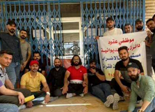ويواصل العاملون من اصحاب العقود والاجور اليومية في دوائر البلدية والبلديات والماء والمجاري بمحافظة الديوانية لليوم الثاني على التوالي، اعتصامهم أمام مبنى ديوان المحافظة، مطالبين بتحويلهم إلى عقود وزارية.