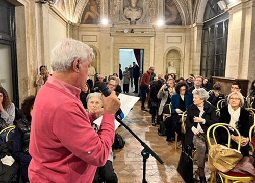 وفي مساء الجمعة اقيمت امسية في قصر فيرنسا التاريخي وسط روما القديمة، نظمها مجمع ألييغري للغة الإيطالية والثقافة، وبدعوة من أستاذ الأدب العربي في جامعة البندقية (سيمونه سيبيليو)، للاحتفاء بالفائزين بالجائزة الخاصة بحوض البحر المتوسط للشعر باسم (أليزا كيمينتي)، والتي فازت بها الشاعرة السورية المقيمة في كندا سهير فوزات.