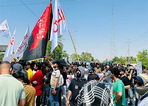 وتظاهر العشرات من المواطنين أمام مبنى محافظة واسط، مطالبين بتوفير فرص عمل، وسط انتشار كبير لقوات مكافحة الشغب.