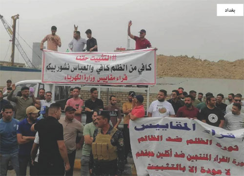 وتجمع العشرات من قراء العدادات والمقاييس التابعين لوزارة الكهرباء أمام بوابة الوزارة في بغداد، مطالبين بتحسين ظروف عملهم والتثبيت على الملاك الدائم.