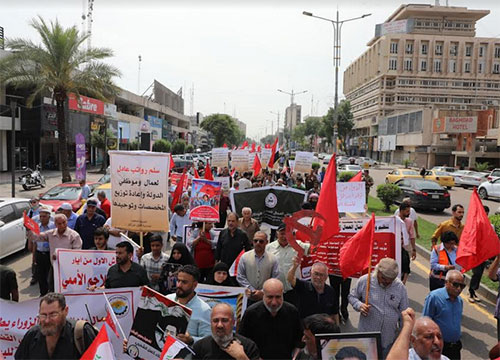 وطالب المشاركون في المسيرة التي انطلقت من ساحة الفردوس واستقرت تحت نصب الحرية في ساحة الحرير، بتفعيل مؤسسات الصناعة الوطنية وتوفير الحقوق والحريات النقابية وتشريع القوانين التي تساهم في رفل الطبقة العاملة ومغادرة نهج الاقتصاد الاحادي والاعتماد على واردات النفط، على حساب قدرات البلد الانتاجية المعطلة وثرواته البشرية والطبيعية المهدورة، جرّاء سوء الإدارة والمحاصصة والفساد.