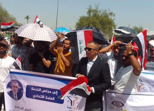 وشهدت العاصمة بغداد تظاهرة شارك فيها حملة الشهادات العليا والخريجون الأوائل للمطالبة بالإسراع في إجراءات تعيينهم.