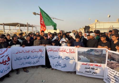 وفي السياق ذاته، صعّد أهالي حي الشرش في قضاء القرنة شمالي البصرة من احتجاجاتهم ضد شركة "الجدار الساند" المنفذة لمشروع البنى التحتية في المنطقة، بعد انقضاء المهلة التي أعلنوها سابقاً دون أي استجابة.