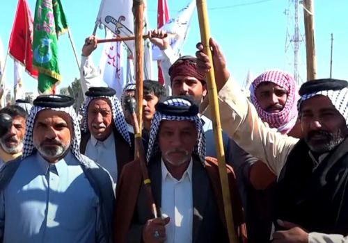تظاهر المئات من الفلاحين والمزارعين من محافظات النجف والديوانية والسماوة في مفرق غماس، عند تقاطع النجف/الديوانية، احتجاجًا على شح المياه وحرمانهم من ممارسة الزراعة على أراضيهم، مطالبين الحكومة بتعويضهم عن الخسائر التي تكبدوها نتيجة عدم قدرتهم على زراعة محاصيلهم. وأكد المتظاهرون، أن غياب سياسة مائية زراعية واضحة أدى إلى تعطيل الزراعة بشكل واسع، ما تسبب بخسائر مالية كبيرة، مطالبين بتوفير المستلزمات الأساسية من المياه والأسمدة والمبيدات والبذور، ووضع خطط شاملة لدعم القطاع الزراعي وضمان استمرارية الإنتاج. ورفع المعتصمون لافتات تطالب بـ"سياسات مائية وزراعية مناسبة" وتأكيد "أهمية دعم الفلاحين وتعويضهم لضمان عدم هجرتهم لأراضيهم بسبب الأزمات المتكررة".