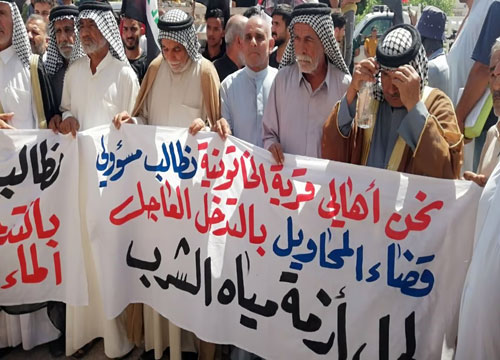 وتظاهر العشرات من أهالي قرية الخاتونية في قضاء المحاويل، أمام دائرة الموارد المائية في مدينة الحلة، احتجاجا على قطع المياه عن النهر الذي يغذي المنطقة.