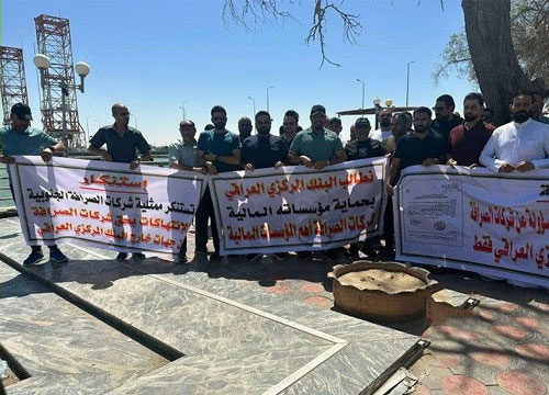 ونظم عدد من أصحاب شركات الصيرفة في محافظة البصرة، وقفة احتجاجية، أمام مقر البنك المركزي في المحافظة، مطالبين بالحد من عمليات التفتيش التي يتعرضون إليها من قبل الجهات الأمنية حيث يجري اعتقالهم دون أوامر قضائية، أو رفقة ممثل عن البنك مع قوات الامن.