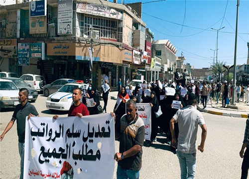 تواصلت الاحتجاجات المطلبية في عدد من محافظات العراق، للمطالبة بتعديل سلم الرواتب، فيما يتواصل اضراب الموظفين في إقليم كردستان، احتجاجا على تأخر صرف معاشاتهم الشهرية.