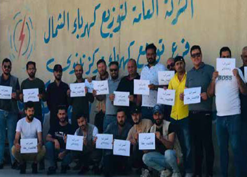ونظم العشرات من موظفي عقود الشركة العامة لتوزيع كهرباء المنطقة الشمالية من قراء المقاييس إضرابا مفتوحا عن العمل، مطالبين بصرف مستحقاتهم المالية.
