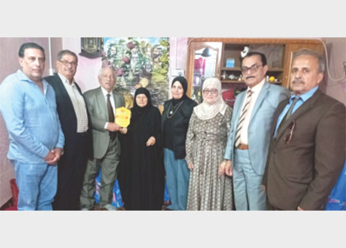 الوفد الذي قدم في نهاية الزيارة لوح الوفاء إلى عائلة الشهيدة، ضم كلا من الرفاق مقداد حسين، جاسم محمد حاجي، عبد الزهرة عذار، باسم محمد حسين، د. يسر الفرطوسي من التيار الديمقراطي والسيدة نوال سالم من رابطة المرأة العراقية.