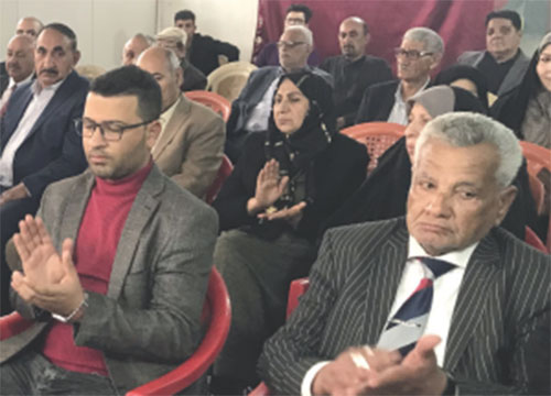 الرفيق مشتاق طالب أدار الاحتفال وافتتحه بدعوة الحاضرين إلى الوقوف دقيقة صمت في ذكرى شهداء الحزب، مع إنشاد النشيد الوطني.