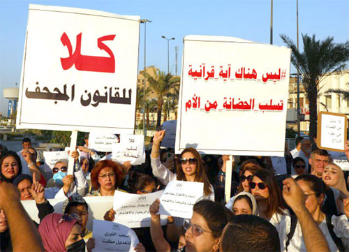 أما فيما يخص حضانة الأطفال بعد الطلاق، فينص القانون الحالي على أن للأم الحق في حضانة الطفل بعد الطلاق حتى بلوغه سن الخامسة عشرة، حيث يُمنح الطفل حينها حرية اختيار الإقامة مع أي من الوالدين. ولا يسقط زواج الأم المطلقة حقها في الحضانة. أما التعديل المقترح، فيسلب الأم هذا الحق في حال زواجها بعد الطلاق، وتنتقل الحضانة للأب عند بلوغ الطفل سن السابعة، بينما تحدد بعض المذاهب الأخرى، مدة حضانة الأم بعامين فقط. وأشار الأورومتوسطي أن تعديل القانون المقترح يؤثر سلبًا على حقوق النساء والفتيات، خاصة وأنه يمنح الأولوية لتطبيق المذهب الديني للرجل في حالات الزواج بين طوائف دينية مختلفة. كما سيؤثر هذا التعديل على حقوقهن في الميراث والنفقة الزوجية ونفقة العدة.
