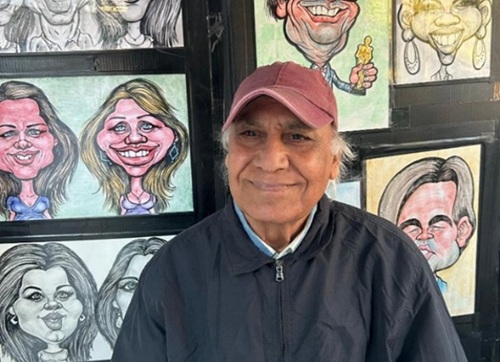 وسط هذا الفضاء، تواجد عدد من الرسامين يعرضون أعمالهم على المارة. لفتني كشك صغير تزيّنه عشرات الرسوم الكاريكاتيرية، بعضها لوجوه مشاهير، وأخرى لسيّاح عاديين. دخلت الكشك، حيث كان الفنان منغمسًا في رسم ملامح أحد الزبائن، وحين انتهى، بادرته بالسلام وأبديت إعجابي بأعماله. عرّفني بنفسه: عبد العال الشذر، فنان عراقي سبعيني من البصرة، مهاجر يقيم في كندا منذ أكثر من عقدين.