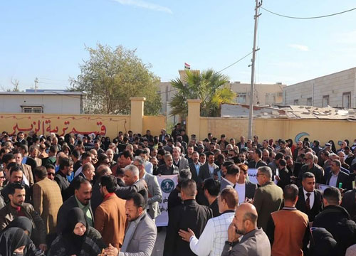 وتظاهر العشرات من خريجي كلية هندسة النفط أمام شركة غاز البصرة في خور الزبير، لمطالبة وزارة النفط بإعادة شمولهم في التعيين المركزي المتوقف منذ العام 2017.