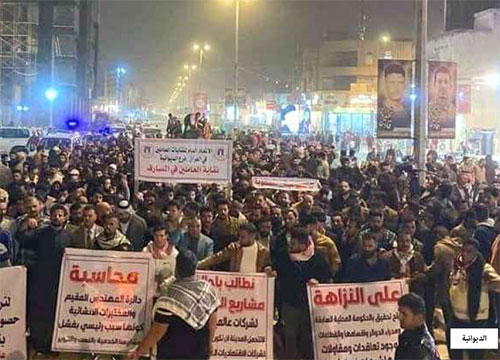 وأضاف، ان المتظاهرين اكدوا على إحالة مشاريع البنية التحتية إلى شركات عالمية رصينة، وإيقاف وسحب العمل من الشركات الفاشلة وكذلك التحقيق في تعاقدات الدوائر الخدمية كافة، مشددين على ضرورة محاسبة الحكومات المحلية السابقة ورؤساء الأقسام والدوائر الخدمية ودائرة المهندس المقيم واللجان الهندسية والفنية التي عملت مع الشركات والمقاولين والتي يفترض إنها كانت تراقب وتتابع الاعمال السابقة والحالية.