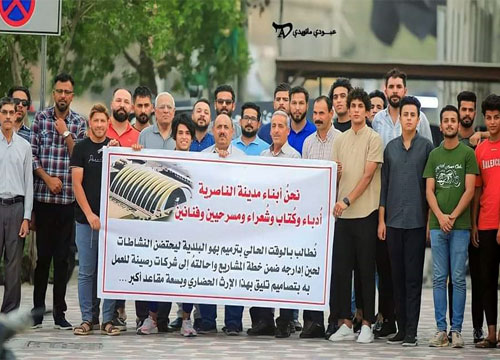 ونظم ناشطون في الناصرية، وقفة احتجاجية أمام مبنى بهو بلدية الناصرية، وسط المدينة، احتجاجاً على تداول معلومات عن طرحه كفرصة استثمارية.