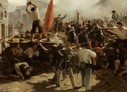 لكن الطبقة الرأسمالية وحلفاءها في الطبقتين الوسطى والمهنية تعلموا درسًا مختلفا. بالنسبة للرأسماليين، أثبت مثال الثورة الفرنسية -في عام 1792 وهنا في عام 1848- أن هناك تهديدا أكبر من استبداد الأنظمة القديمة. أراد بعض الليبراليين البرجوازيين إصلاحًا دستوريا، واستقلالا وطنيا، وأحيانا ديمقراطية محدودة، لكن ليس بالقدر الذي أرادوا به الحفاظ على مكانتهم في المجتمع ومنع الاضطرابات القادمة من أسفلهم.
