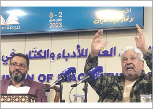الجلسة التي احتضنتها قاعة الجواهري في مقر الاتحاد، أدارها الأمين العام للاتحاد الشاعر عمر السراي. وأشار في مستهلها إلى العلاقة بين الشعر والموقف. وقال: “أن تكون شاعراً في العراق أمر هين، لكن أن تكون شاعراً وموقفاً هي الصعوبة الكبرى”.