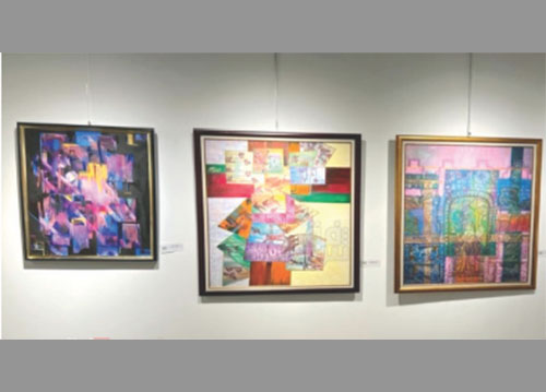 ويضم المعرض الذي يستمر افتتاحه حتى يوم 11 آذار المقبل، لوحات ملونة بمختلف القياسات.