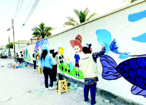يقوم فريق متطوع من الرسامين الشباب في مدينة البصرة، بتزيين جدران مدارس المدينة بالرسوم التوعوية الهادفة.